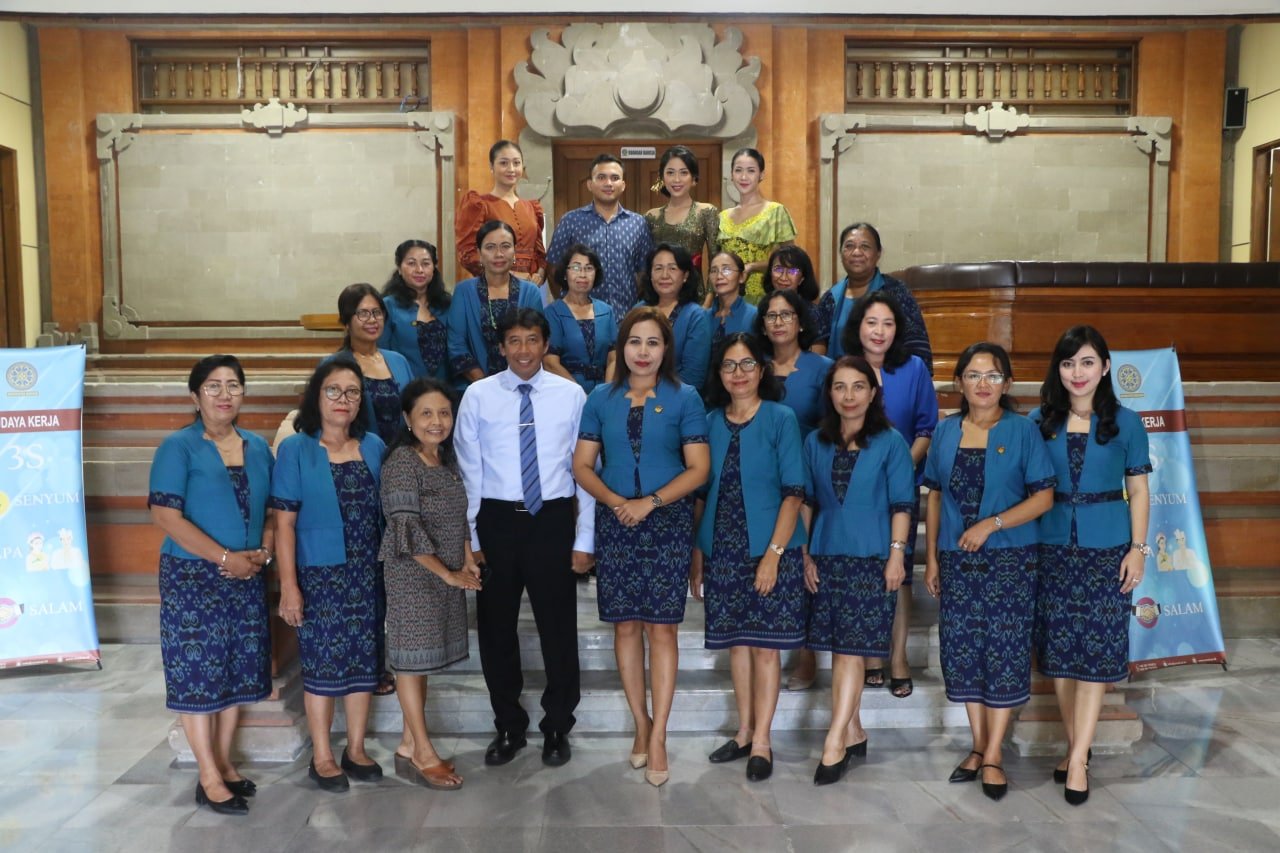 Jimbaran | barometerbali – Dharma Wanita Persatuan Universitas Udayana (DWP Unud) merayakan HUT ke- 23 bertempat di Ruang Nusa Gedung Rektorat Kampus Jimbaran, Rabu (7/12/2022). Perayaan ditandai dengan pemotongan tumpeng oleh Ketua DWP Unud yang dirangkaikan dengan kegiatan sharing Etika dan Estetika dalam Berbusana ke Kantor, Gala Dinner dan Busana Kundangan. Narasumber dalam kegiatan ini yakni Kadek Wira Dika Saskara, S.Tr.Ds.,M.Sn.