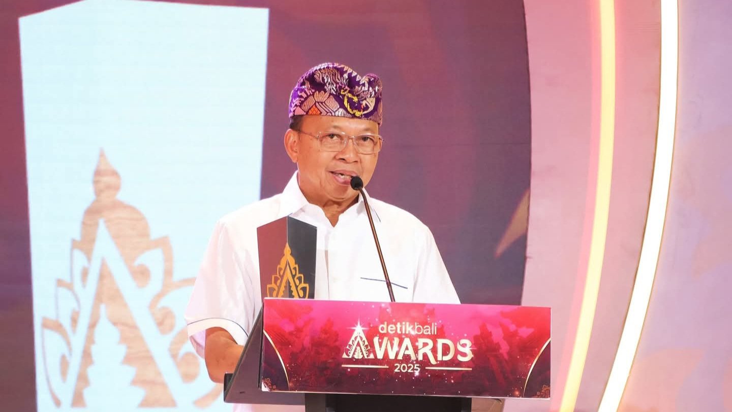 Foto: Gubernur Bali Wayan Koster menegaskan budaya jadi arus utama penggerak pariwisata dan ekonomi di Bali di ajang detikbali Awards 2025 di The Trans Resort, Seminyak, Badung, Sabtu (22/3/2025). (barometerbali/rah)