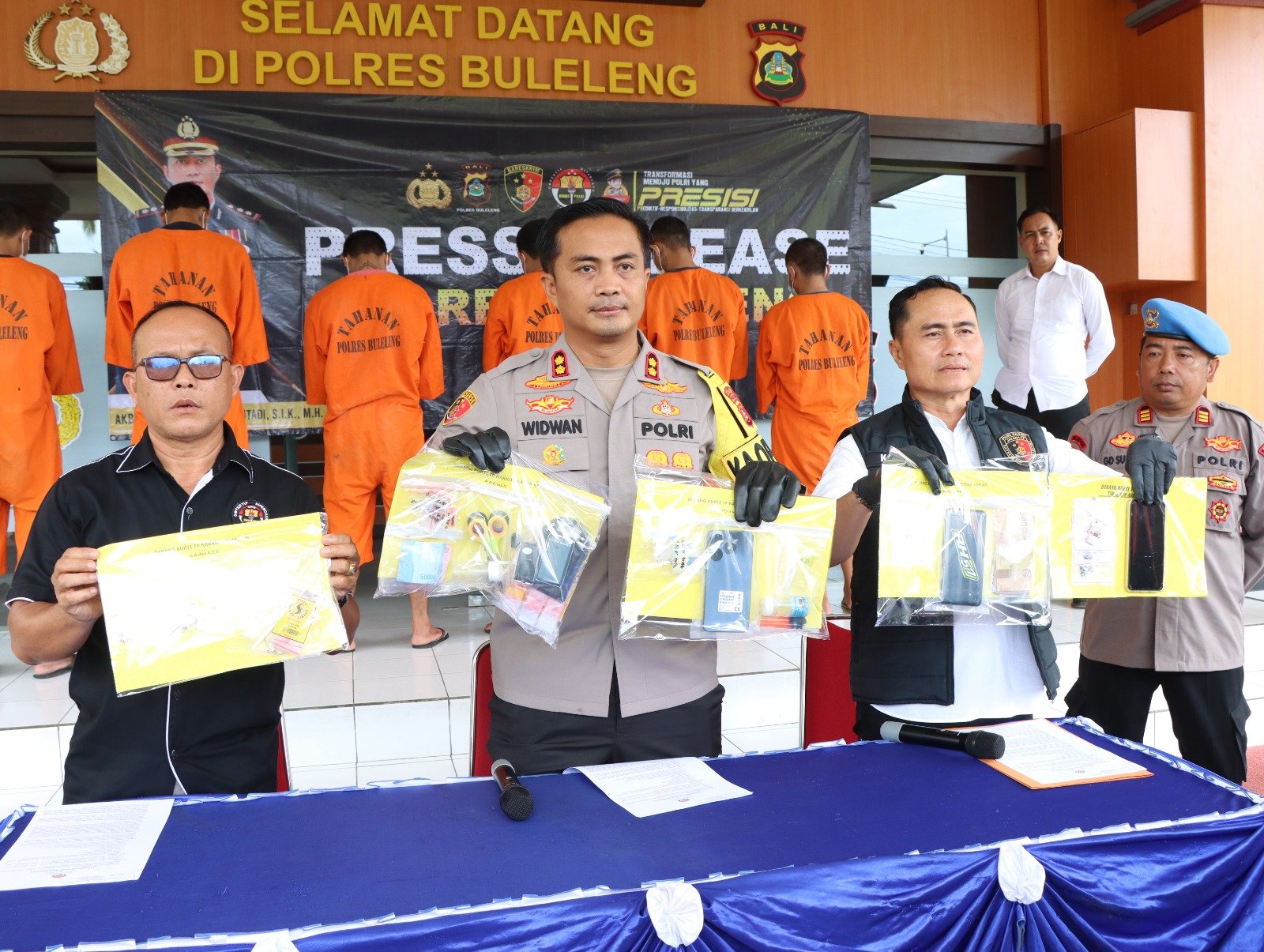 Buleleng | barometerbali – Komitmen Polres Buleleng dalam memberantas peredaran narkotika semakin terlihat di awal tahun 2025. Dalam press release yang digelar di Lobi Mapolres Buleleng, Senin (22/01/2025), pukul 11.00 WITA, Kapolres Buleleng AKBP Ida Bagus Widwan Sutadi, S.I.K., M.H., memaparkan keberhasilan Tim Khusus Bhayangkara Goak Poleng dalam mengungkap empat kasus tindak pidana narkotika di wilayah hukum Polres Buleleng. Dalam hal ini enam tersangka berhasil diamankan berikut barang bukti yang menunjukkan keterlibatan mereka dalam jaringan peredaran narkoba.