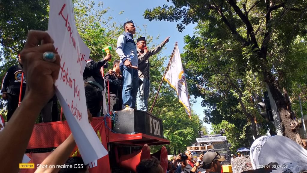 Surabaya | barometerbali – Upaya bentuk kekecewaan dan kepedulian dari Aliansi Madura Indonesia (AMI) terhadap putusan hakim yang telah membebaskan Ronald atas dakwaan pembunuhan Dini Sera dibuktikan dengan menggerakkan ratusan massa untuk mengepung kantor Pengadilan Negeri Surabaya.