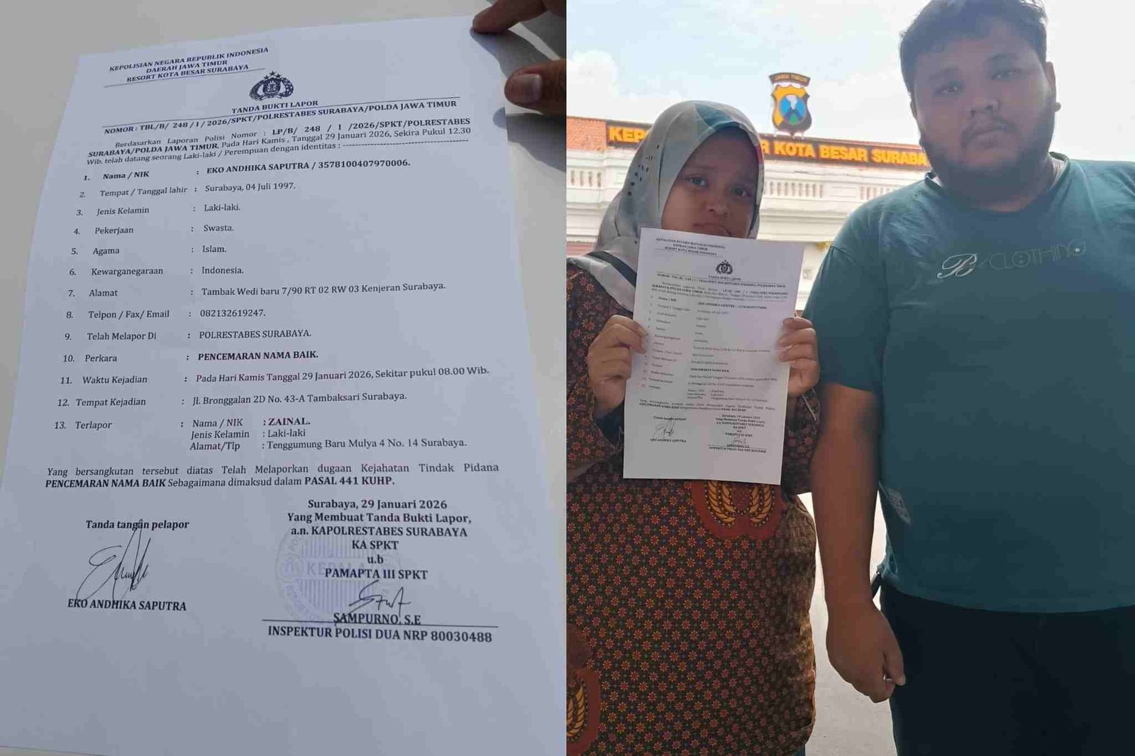 Barometer Bali | Surabaya – Pemimpin Redaksi media Datacyber.id, Eko Andhika Saputra, akhirnya menempuh jalur hukum dengan melaporkan dugaan pencemaran nama baik dan penyalahgunaan media elektronik yang diduga dilakukan oleh Pemimpin Redaksi media MimbarDemokrasi.com berinisial Z ke Polrestabes Surabaya.