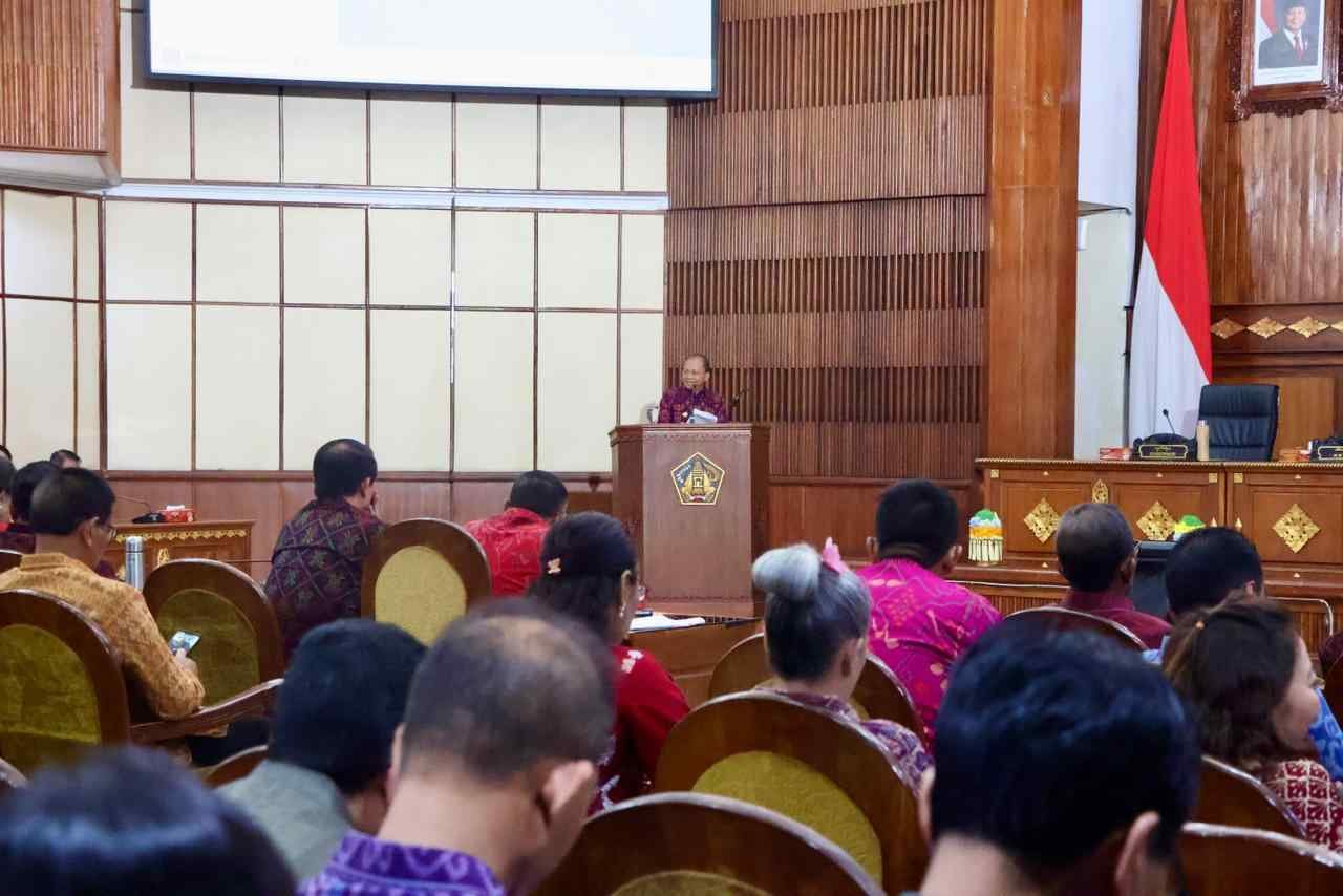 Turut hadir pada sidang hari ini Ketua DPRD Provinsi Bali, Dewa Made Mahayadnya serta Kepala Perangkat Daerah di lingkungan Pemprov Bali. (rah)