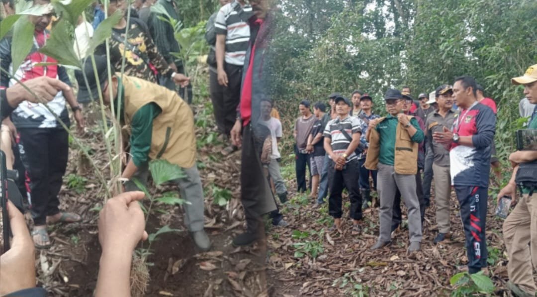 Kunjungan tersebut diakhiri dengan aksi simbolis penanaman kembali 15 bibit pohon produktif, yakni durian, manggis, dan aren, sebagai simbol komitmen bersama menjaga kelestarian hutan.