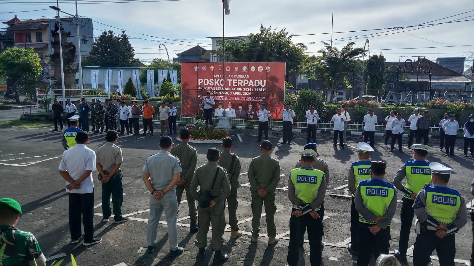 Foto: Pelaksanaan Apel Gelar Pasukan beberapa waktu lalu yang dilaksanakan Pemerintah Kota Denpasar melalui Dinas Perhubungan di halam Kantor UPT Terminal Ubung yang bersinergi bersama TNI, Polri, Sat Pol PP, Organda serta instansi terkait lainya dalam mendukung optimalisasi serta kelancaran pelaksanaan mudik lebaran tahun ini. (Sumber: BB 215/pur).