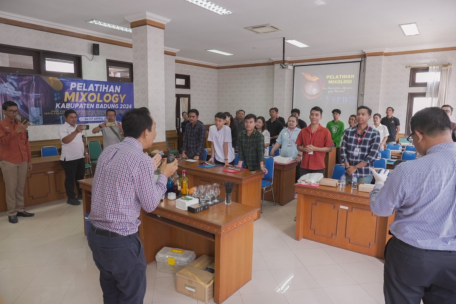 Foto: Kegiatan pelatihan mixologi minuman di Ruang Rapat Cempaka Dinas Koperasi, UKM dan Perdagangan Diskopukmp Kabupaten Badung, Rabu (24/4/2024). (Sumber/BB/Rian)