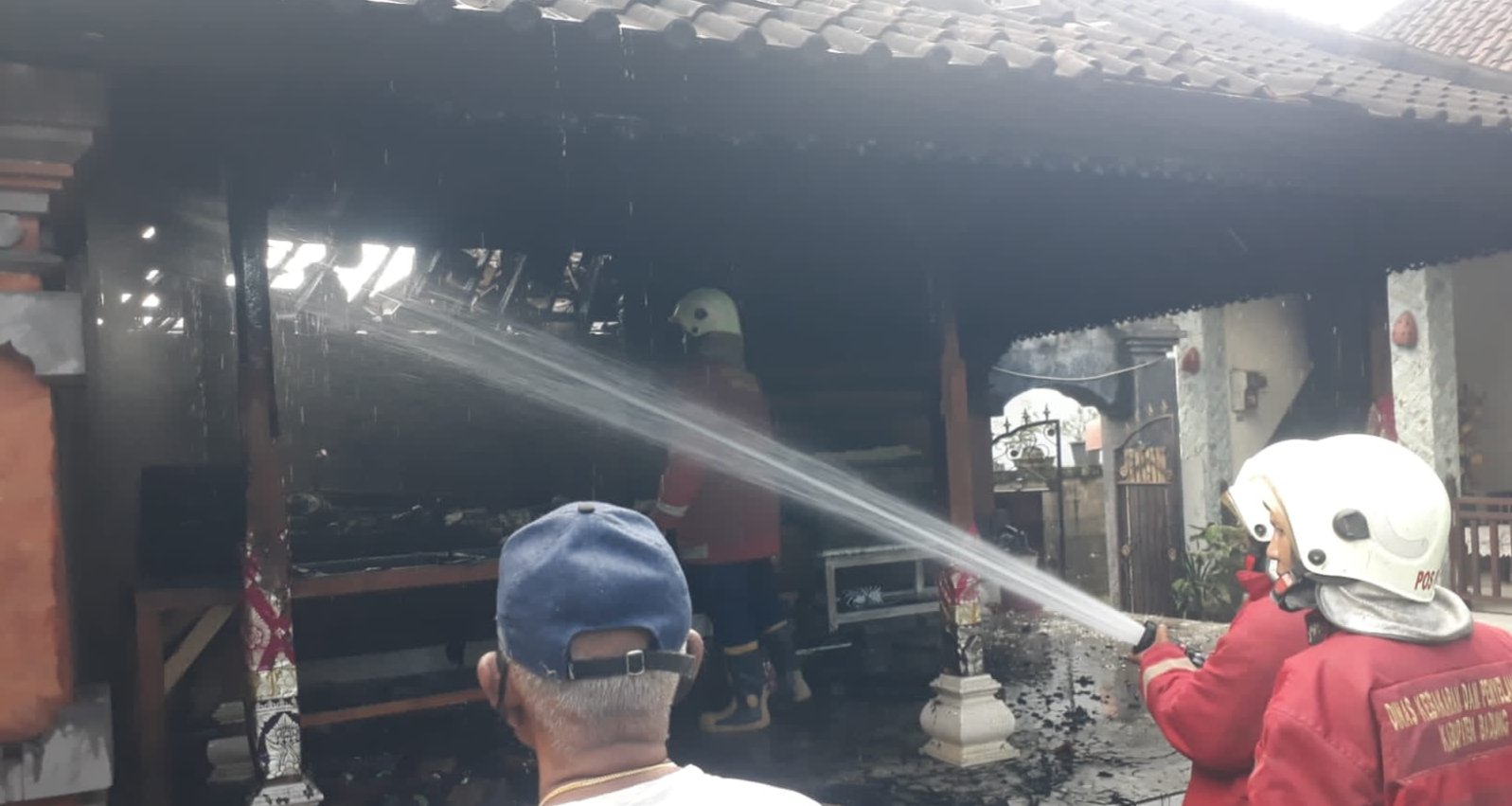 Foto: Petugas Damkar Badung berusaha memadamkan kobaran api yang melalap bale delod rumah korban I Nyoman Suarnya di Banjar Umacandi, Desa Buduk, Kecamatan Mengwi, Kabupaten Badung, Rabu (4/1/2023) pukul 15.00 Wita. (hms/res/bdg)