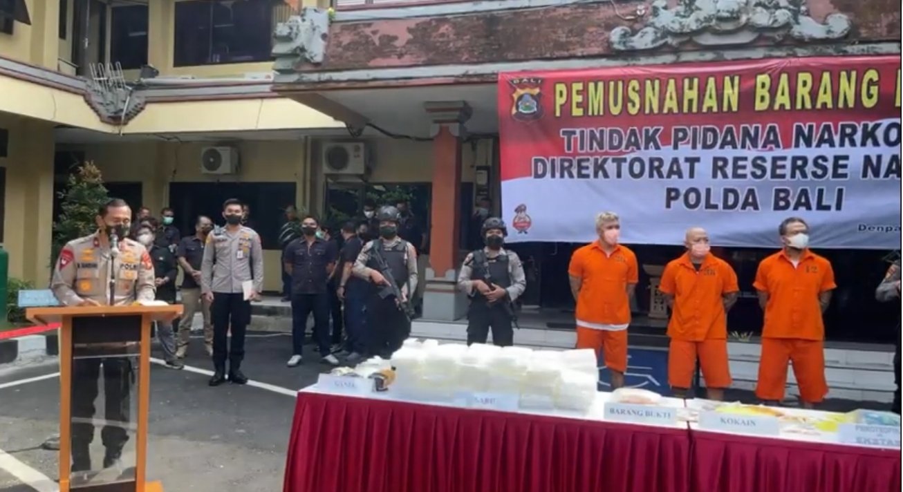 Denpasar | barometerbali – Polda Bali melalui Direktorat Reserse Narkoba (Dirresnarkoba) melakukan pemusnahan barang bukti (BB) narkotika dan psikotropika hasil pengungkapan kasus dengan tiga tersangka selama periode Januari hingga Juni 2022 ini.