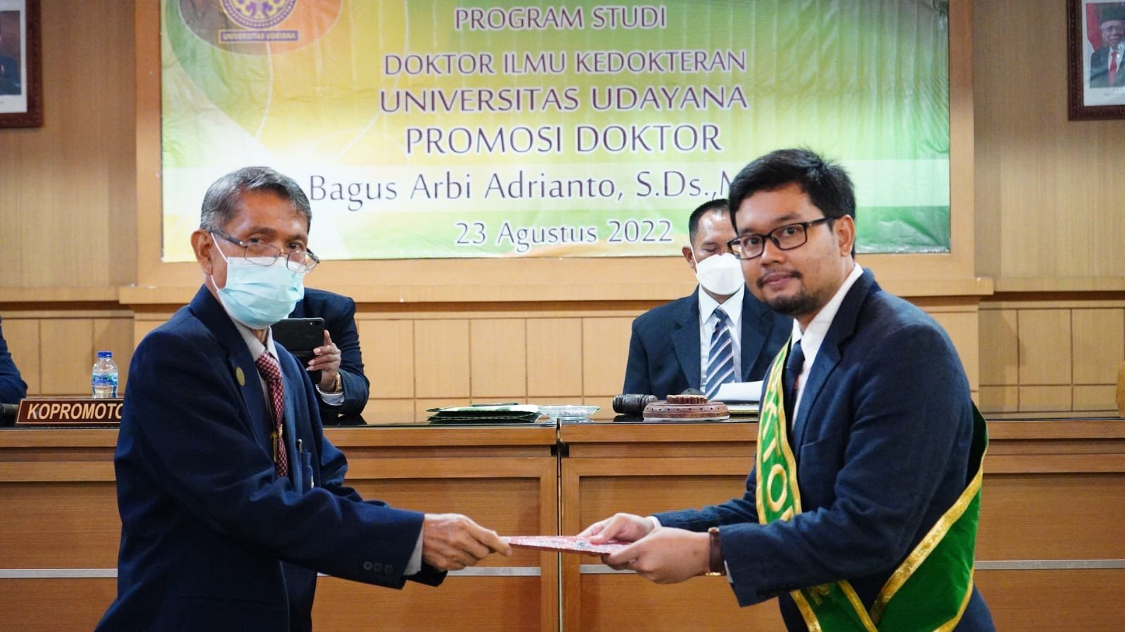 Pada ujian kali ini Dr. Bagus Arbi Adrianto, S.Ds., M.Erg dinyatakan lulus sebagai Doktor Lulusan ke- 361 Program Studi Doktor Ilmu Kedokteran Fakultas Kedokteran Universitas Udayana dengan predikat, “Sangat Memuaskan”. (BB/501/rls)