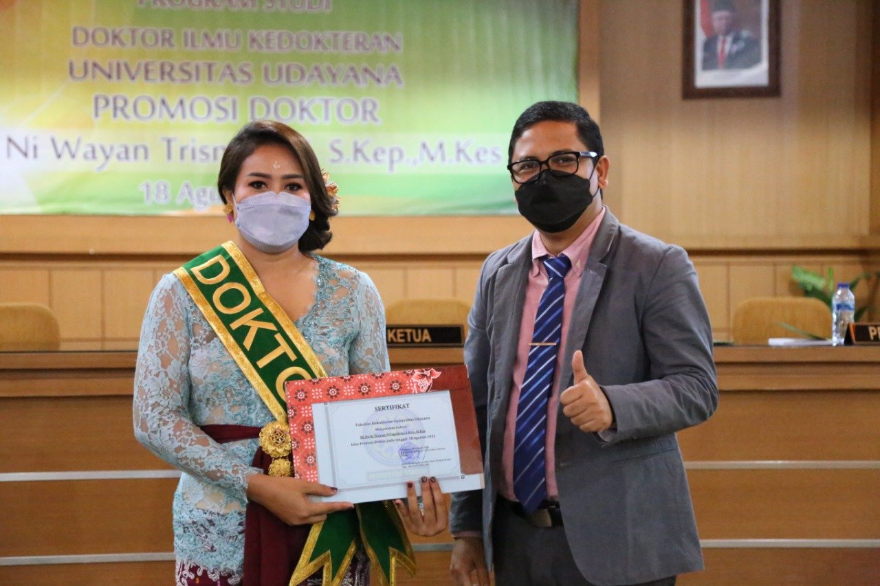 Pada ujian kali ini Dr. Ns. Ni Wayan Trisnadewi, S.Kep.,M.Kes dinyatakan lulus sebagai Doktor Lulusan ke- 358 Program Studi Doktor Ilmu Kedokteran Fakultas Kedokteran Universitas Udayana dengan predikat, “Sangat Memuaskan”. (BB/501/rls)