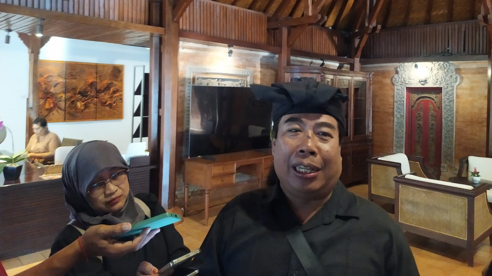 Ket foto: Made Dollar Astawa saat diwawancara awak media di Santrian Art Gallery, Sanur pada, Jumat (20/9/2024) (Sumber: barometerbali/rian)