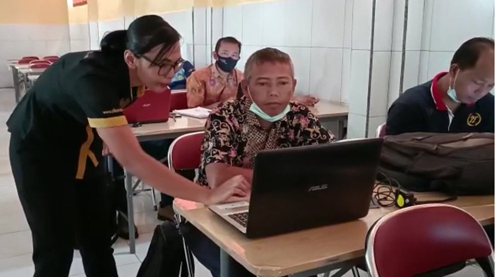 CAPTION-2: Linda Santiari sedang memandu para guru menggunakan LMS.