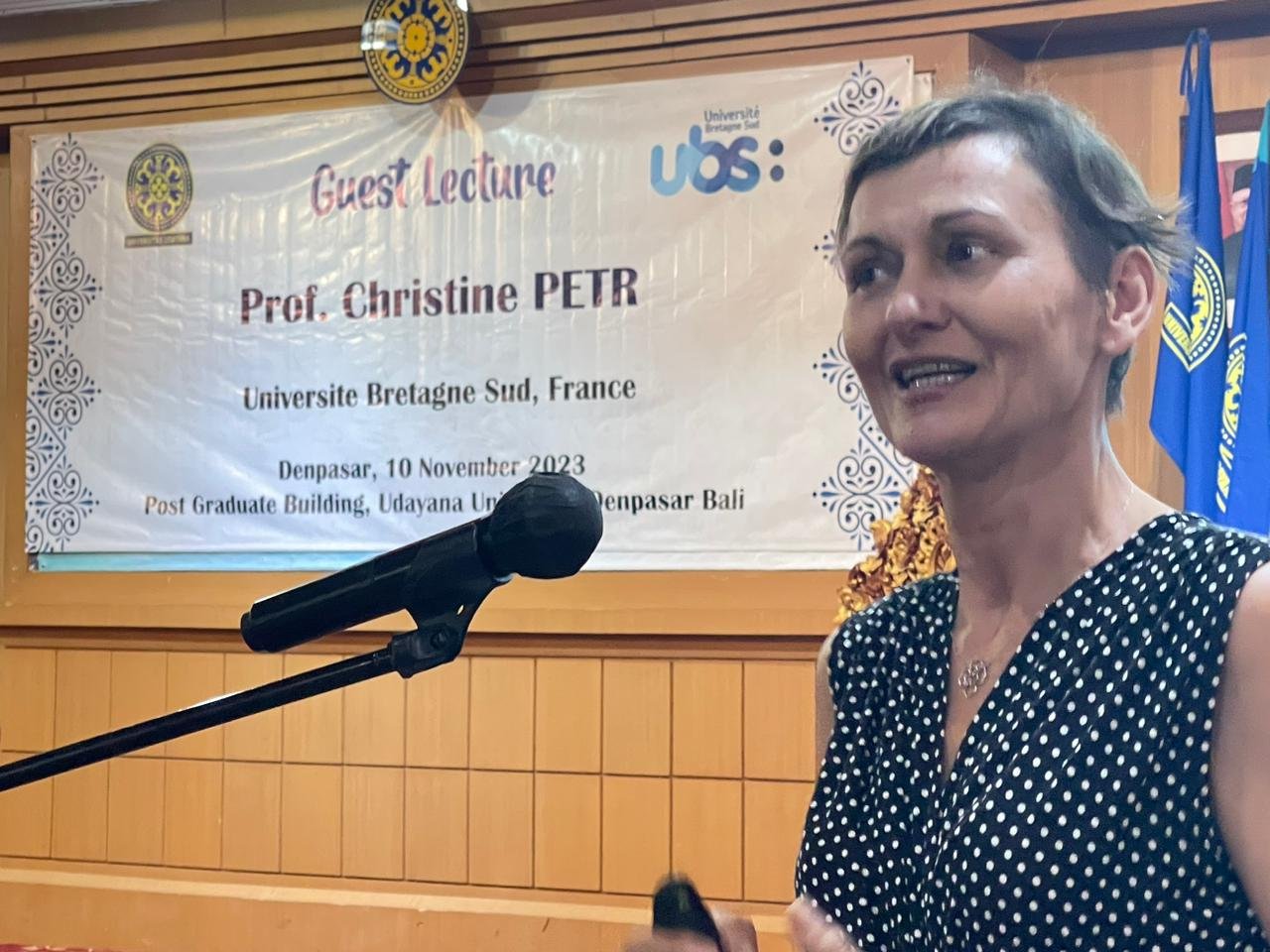 Foto: Guru Besar Universite Bretagne Sud, Prancis Prof. Christine PETR saat hadir sebagai guest lecture (kuliah dosen tamu) Fakultas Pertanian Universitas Udayana. (BB/FP/Unud)