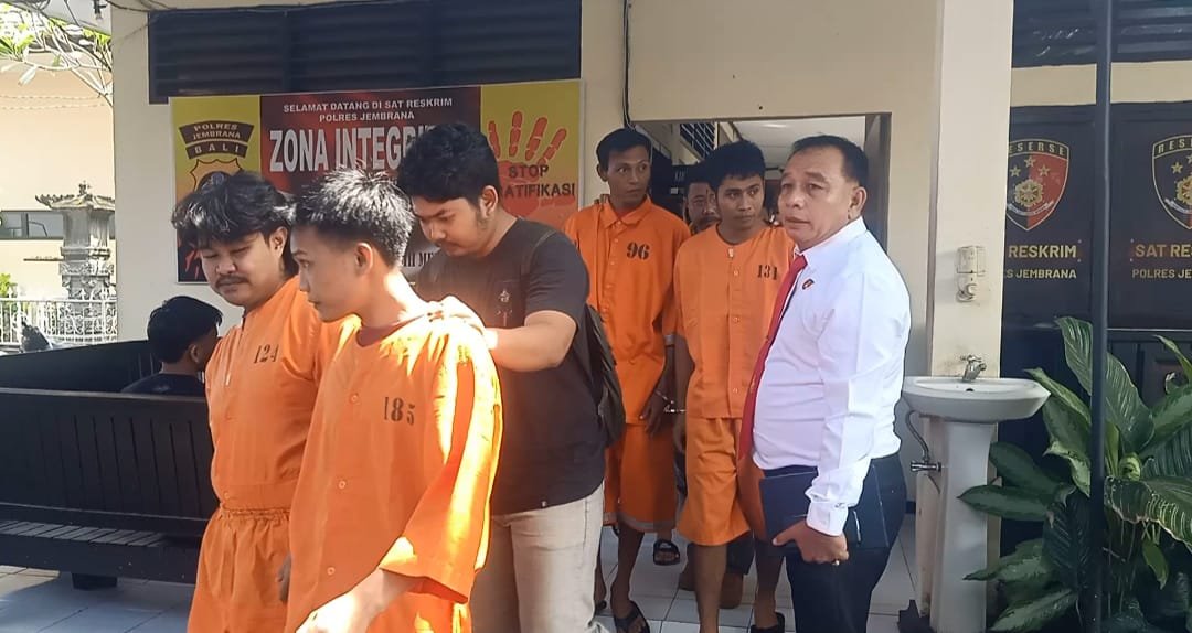 Ket foto: Para tersangka kasus pencurian dengan pemberatan saat dihadirkan dalam konferensi pers di Mapolres Jembrana , Selasa (14/5/24). (Sumber: BB/219)