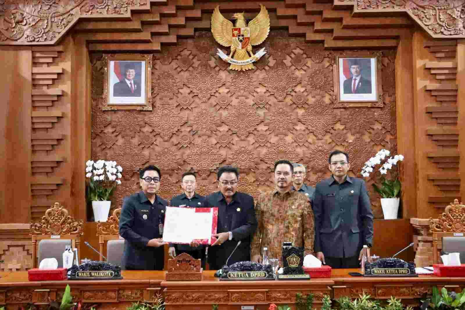Barometer Bali | Denpasar – Seluruh Fraksi DPRD Kota Denpasar secara resmi menyetujui penetapan dua Rancangan Peraturan Daerah (Ranperda) dalam Penutupan Rapat Paripurna ke-39 Masa Persidangan III DPRD Kota Denpasar yang dipimpin Ketua DPRD Kota Denpasar, I Gusti Ngurah Gede bersama Wakil Ketua, I Wayan Mariyana Wandhira dan Wakil Dr. Made Oka Cahyadi Wiguna di Gedung DPRD Kota Denpasar, Jumat (17/10/2025). Keduanya yakni Rancangan Peraturan Daerah (Ranperda) tentang Penambahan Penyertaan Modal Pada Perseroan Terbatas Bank Pembangunan Daerah Bali Tahun Anggaran 2025 dan Rancangan Peraturan Daerah Tentang Anggaran Pendapatan Dan Belanja Daerah (APBD) Kota Denpasar Tahun Anggaran 2026.