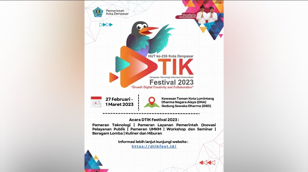 “Meski dengan beberapa keterbatasan, DTIK Fest 2023 hadir berlandaskan spirit vasudhaiva kutumbhakam, semangat menyama braya dan berkolaborasi, agar tetap dapat menampilkan event transformasi digital kebanggaan Kota Denpasar ini secara baik kepada masyarakat,” jelas Kepala Dinas Komunikasi Informatika dan Statistik Kota Denpasar, Dr. I.B. Alit Adhi Merta, S.STP, M.Si didampingi Kepala Bidang Pengelolaan Informasi Publik (Kabid PIP) I Ketut Agus Indra Diatmika S.Kom kepada media pada Senin (20/2/2023).