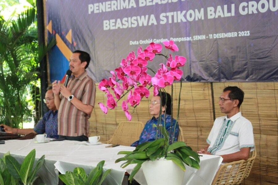 Tiga pejabat teras STIKOM Bali Group yakni Prof. Dr. I Made Bandem, MA., Dr. Dadang Hermawan dan Drs. Ida Bagus Dharmadiaksa, M.Si., Ak menyampaikan penghargaan yang tinggi dan berlimpah terima kasih kepada dua musisi asal NTT, Mario dan Boy, yang dengan cara berbeda memberi dukungan kepada Dadang Hermawan untuk melaju ke DPR RI.