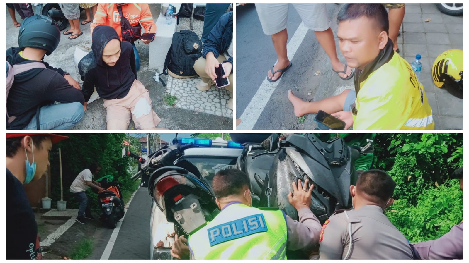 Dari peristiwa tersebut Iwan Purwanto pengendara sepeda motor Vario warna hitam dengan nomor Polisi DK 4821 OO mengalami luka lecet pada bagian kaki sedangkan sedangkan Andrean Tiffiter pengendara sepeda otor X Max DK 2507 FBN mengalami luka lecet pada bagian kaki sebelah kiri.