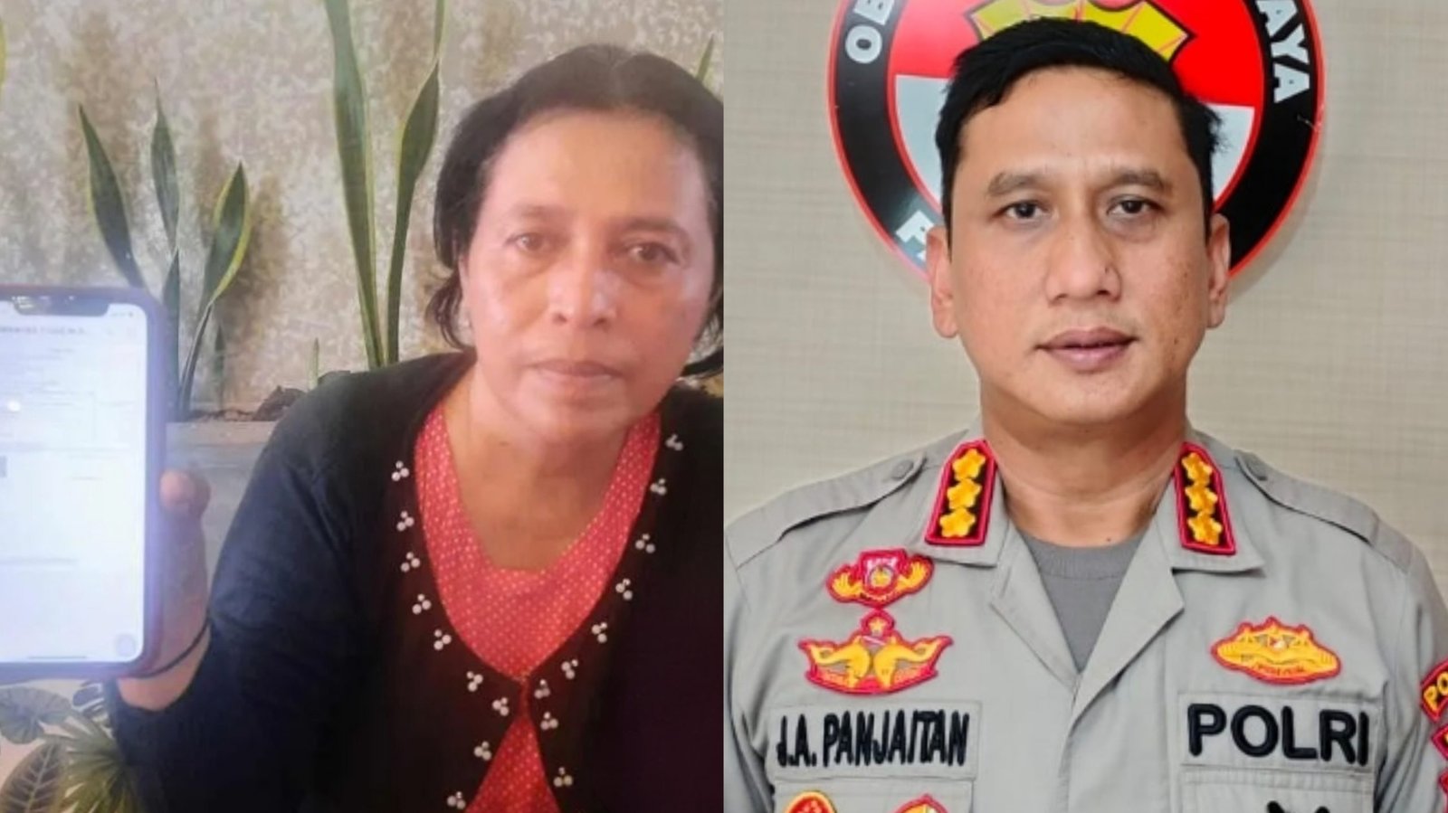 Kolase foto: Ibunda tersangka kasus galian C ilegal Leviana Adriningtyas, Nunuk Purwandari (kiri) dan Kabid Humas Polda Bali Kombes Pol Jansen Avitus Panjaitan (kanan). (Sumber: Pancar Pos/Hms Polda Bali)