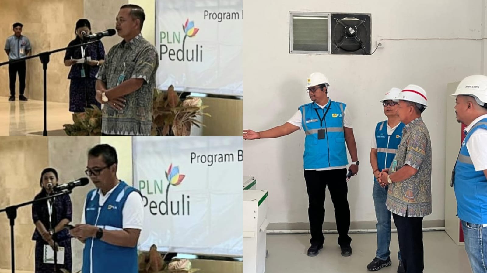 Foto: Sambutan Dirut RSUP Prof Ngoerah dr Wayan Sudana dan GM PT PLN UID Bali Sindu Putra serta Manajer PLN UP3 Bali Selatan, I Putu Kariana memberikan penjelasan di dalam instalasi gardu PLN yang terpasang di areal gedung wellness dan aesthetic RSUP Prof. Ngoerah. (barometerbali/213)
