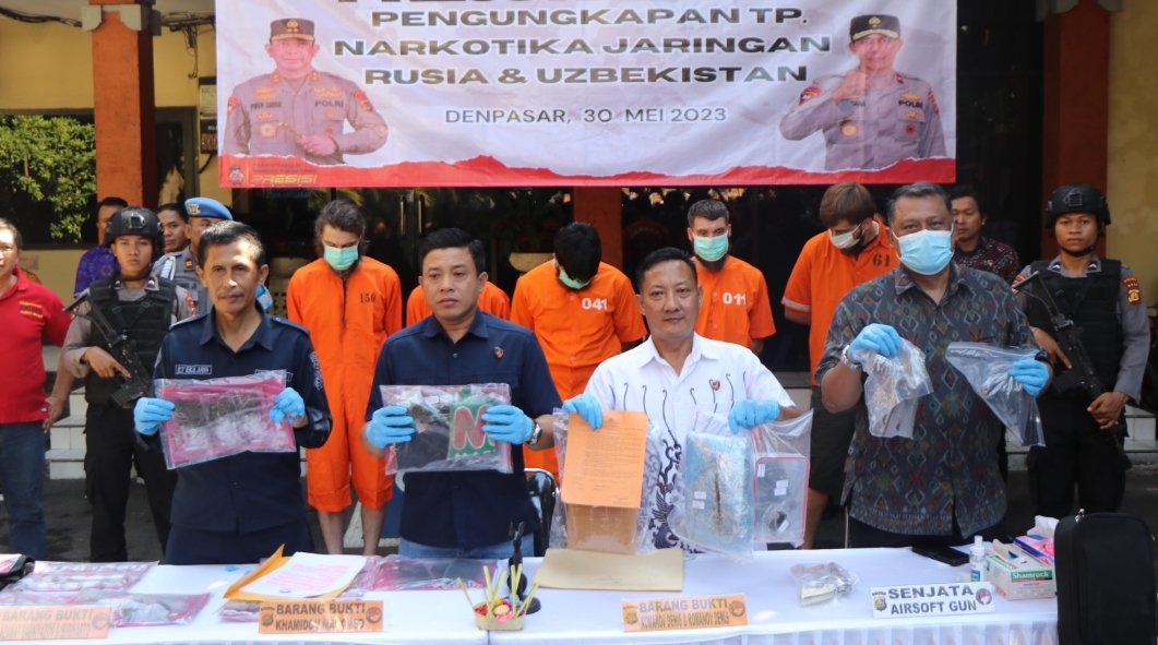 Wadir Ditresnarkoba Polda Bali AKBP Ponco Indriyo, menjelaskan Ditresnarkoba Polda Bali berhasil mengungkap jaringan peredaran gelap narkoba yang melibatkan 6 orang WNA. Tiga (3) orang di antaranya berasal dari Uzbekistan , 3 orang berasal Rusia dan 1 orang WNI. Dalam keterangannya, masing-masing dari pelaku ditangkap di tempat berbeda dan terlibat dalam jaringan peredaran narkoba