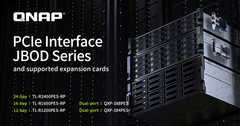 Kebutuhan media penyimpanan yang terus bertambah hingga mencapai ukuran petabyte menuntut perusahaan harus siap untuk implementasi perangkat penyimpanan yang memiliki fleksibilitas tinggi untuk penyimpanan skala besar sampai dengan skala petabyte. QNAP Hadir dengan rilis terbaru setelah model 12 dan 16 slot dari seri TL-Rx00PES-RP PCIe JBOD, TL-R2400PES-RP hadir dalam model rackmount 4U dengan 24 slot. Pengguna dapat memperluas volume penyimpanan NAS yang ada sampai dengan ukuran petabyte dengan menghubungkan beberapa JBOD seri TL-Rx00PES-RP tanpa perlu membangun ulang RAID pada NAS utama.
