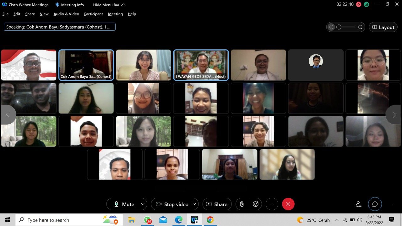Kegiatan dilakukan dengan sistem talkshow yang dipandu langsung oleh Cokorda Anom Bayu Sadyasmara, S.TP., M.Sc.