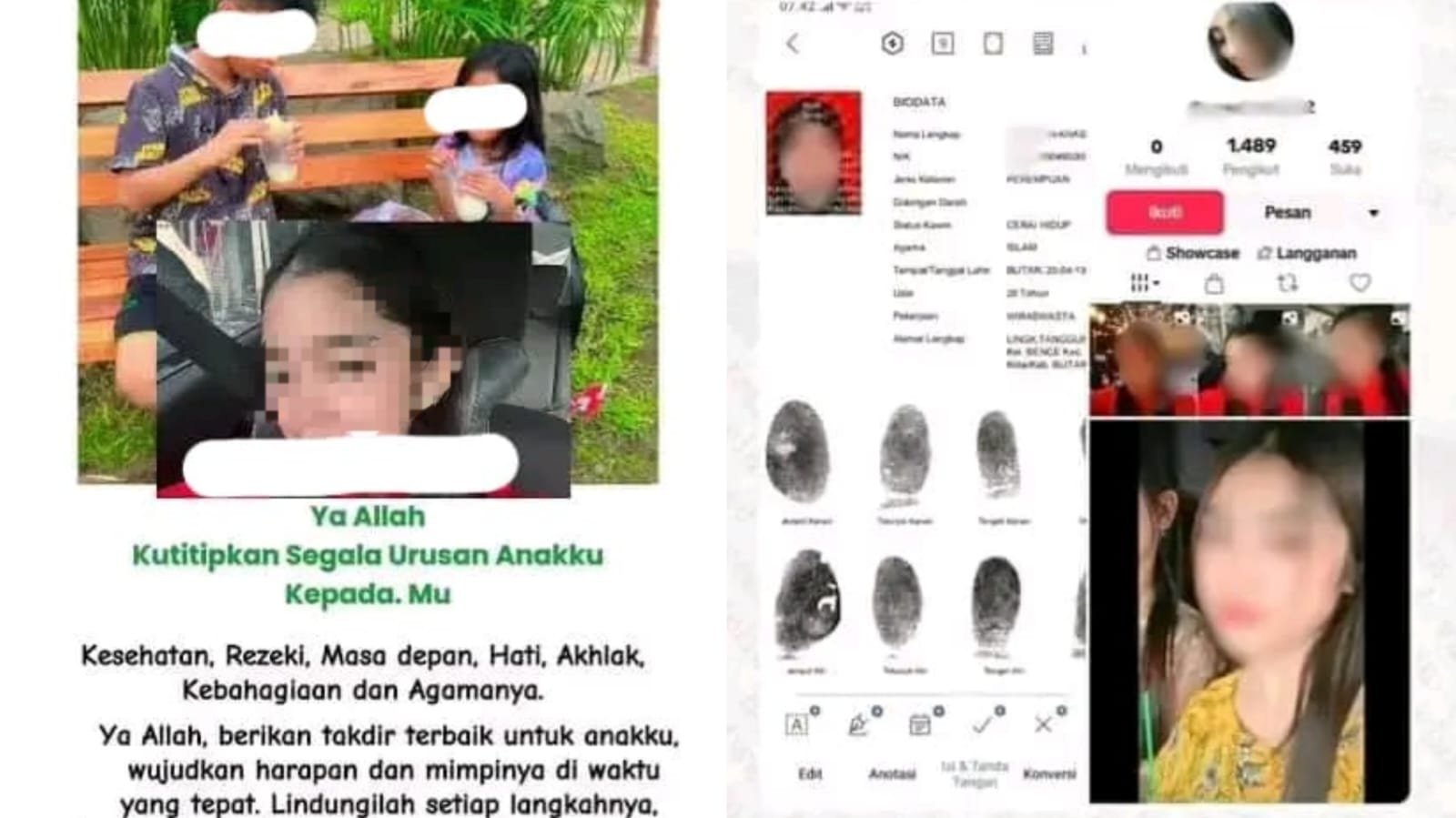 “Ya Allah kutitipkan segala urusan anakku kepada-Mu. Kesehatan, rezeki, masa depan, hati, akhlak, kebahagiaan dan agamanya. Ya Allah berikan takdir terbaik untuk anakku, wujudkan harapan dan mimpinya di waktu yang tepat,” tulis korban.