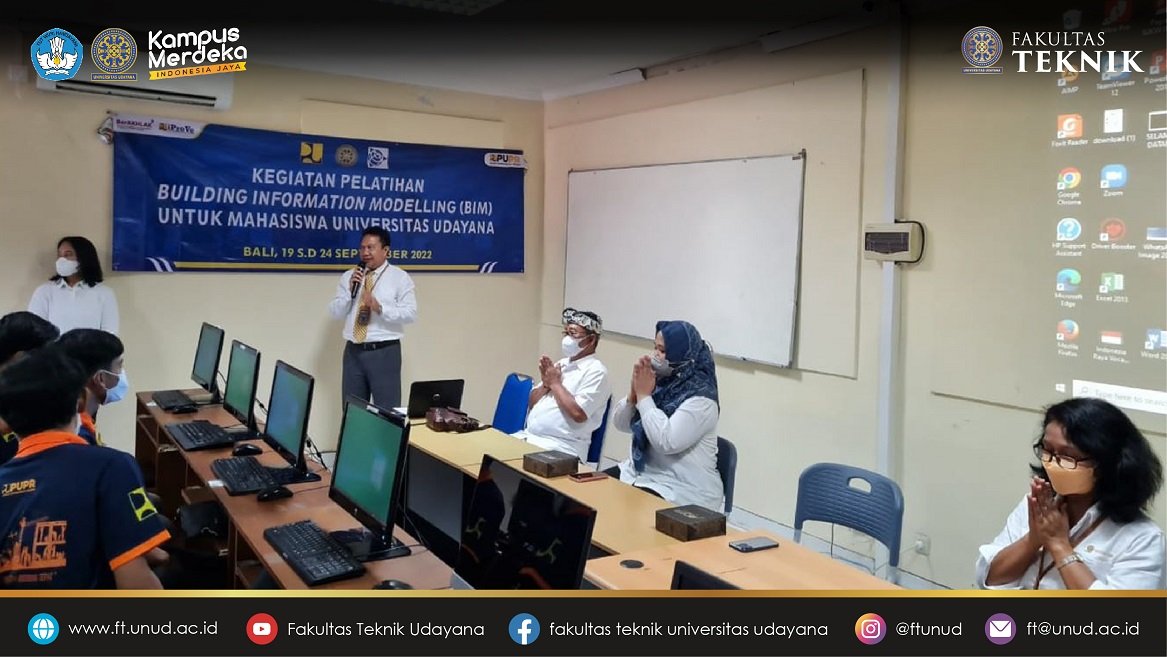 Dalam sambutannya, Dekan FT Unud menyampaikan peran penting pelatihan BIM bagi lulusan Fakultas Teknik Universitas Udayana yang akan memasuki dunia kerja di mana skill dan pengetahuan di bidang BIM sangat dibutuhkan mengingat tantangan pembangunan infrastruktur yang semakin kompleks.