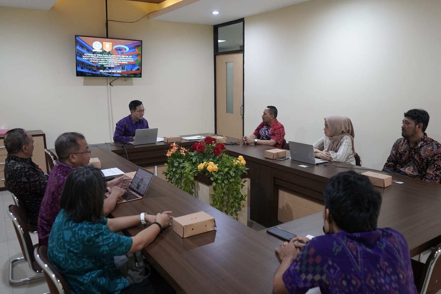 Dekan FEB Unud, Agoes Ganesha Rahyuda, S.E., M.T., Ph.D., yang didampingi oleh Wakil Dekan I FEB Unud, Dr. Ida Bagus Putu Purbadharmaja, S.E., M.E., Koordinator Unit Pengelola Informasi dan Kerja Sama, I Nyoman Nurcaya, S.E., M.M. Koordinator Program Studi Sarjana Ekonomi, Dr. Ni Putu Wiwin Setyari, SE, M.Si, menerima langsung rombongan dari Badan Pengawasan Keuangan Dan Pembangunan (BPKP) yang dipimpin oleh Subkoordinator Pengelolaan Barang Milik Negara, Rumah Tangga, dan Kearsipan Badan Penelitian Dan Pengembangan Pengawasan BPKP.