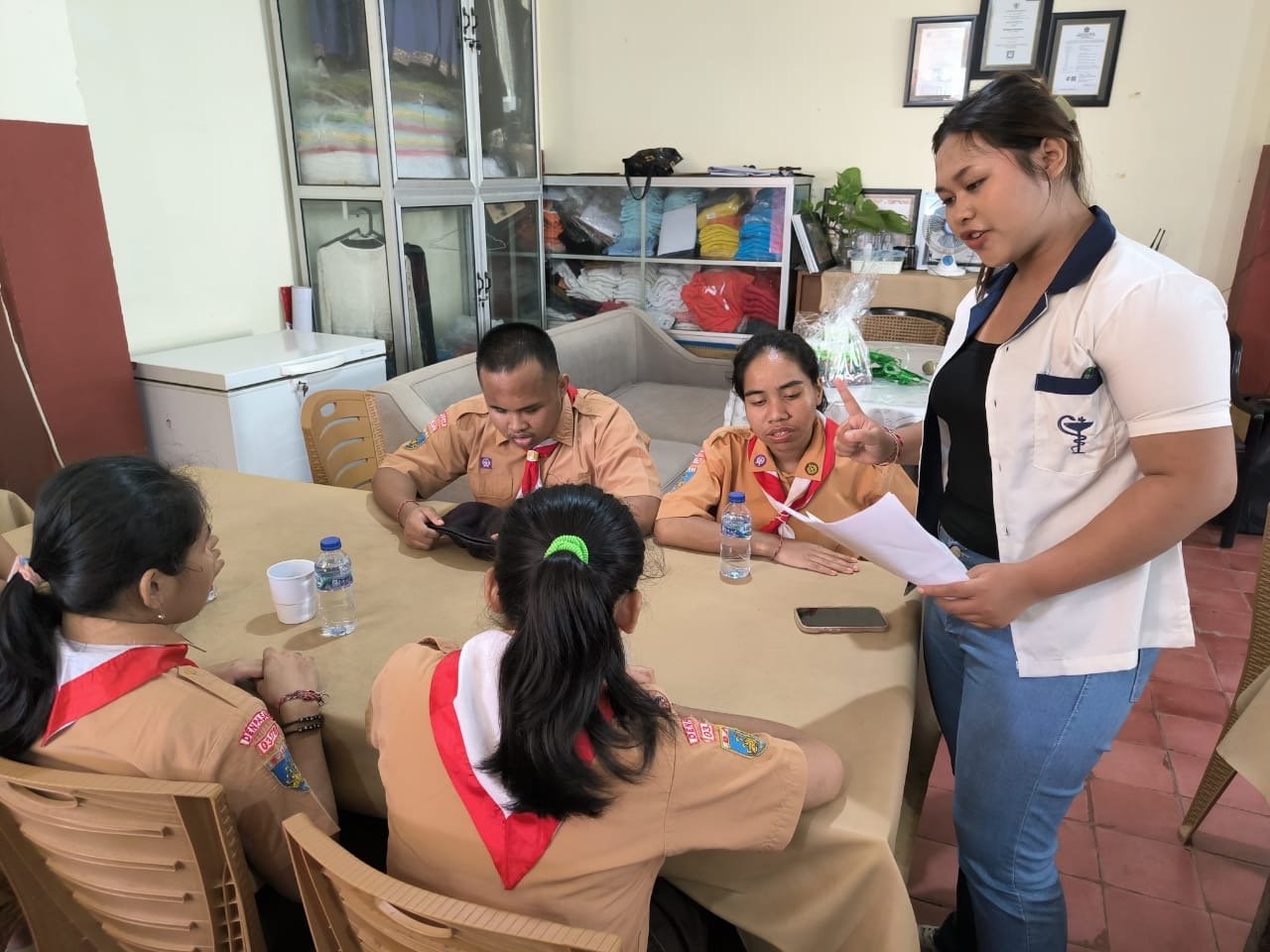 Pelaksanaan diskusi dalam kelompok kecil oleh tutor sebaya ini dilakukan di bawah supervisi dosen pelaksana kegiatan pengabdian kepada masyarakat. Untuk memastikan keberhasilan kegiatan ini dilakukan pre-test dan post-test bagi penyandang disabilitas sensorik netra yang didampingi oleh mahasiswa Fakultas Farmasi Universitas Mahasaraswati Denpasar.