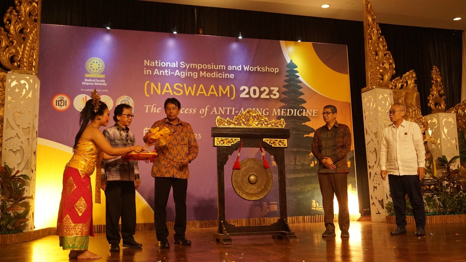 Kegiatan NASWAAM 2023 yang diselenggarakan oleh Pusat Studi Anti-Aging Medicine Fakultas Kedokteran Universitas Udayana, didukung oleh Program Studi Magister Ilmu Biomedik kekhususan Anti-Aging Medicine, bekerja sama dengan INCAAM, PERKAAMI, dan PERSANDI, kali ini mengambil tema “The Success of Anti-Aging Medicine” yang diselenggarakan di Griya Agung Ballroom, Prime Plaza Hotel, Sanur, Jumat (10/2/2023).