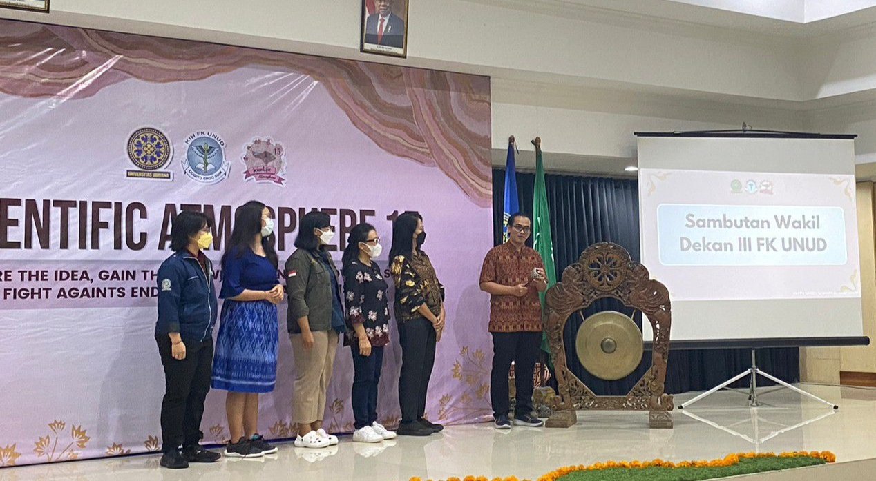 Acara ini dibuka oleh Wakil Dekan Bidang Kemahasiswaan dan Informasi FK Unud, Prof. dr. I Made Ady Wirawan, MPH., Ph.D dalam sambutannya menyatakan kegiatan Scientific Atmosphere XV ini diselenggarakan dalam bentuk kompetisi ilmiah bagi mahasiswa dan siswa SMA/sederajat dan simposium nasional.