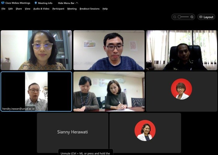 Pertemuan inisiasi kerja sama Fakultas Kedokteran Unud dengan Far Eastern Memorial Hospital (FEMH) Taiwan, secara daring, Jumat (3/2/2023). (Tangkapan layar: FK Unud)