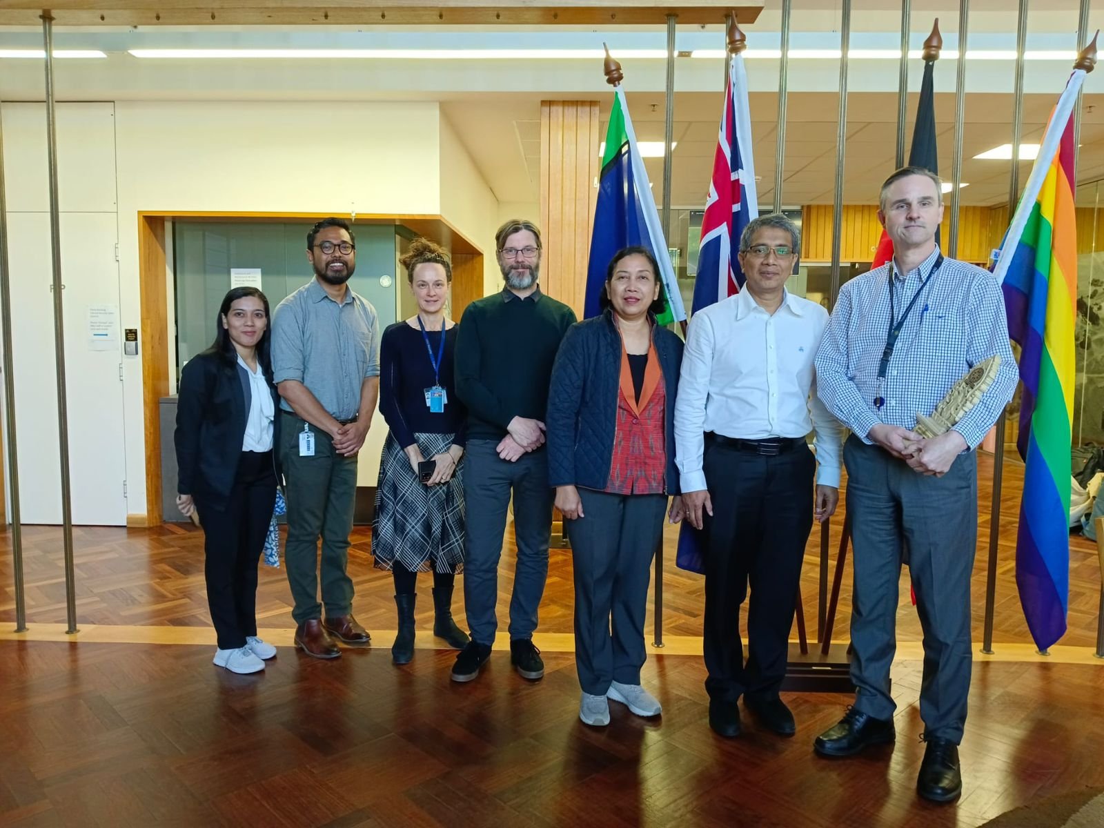 Dekan FK UNUD, Prof. Dr. dr. Komang Januartha Putra Pinatih, M.Kes dan tim, diterima langsung oleh Prof. Christine Phillips (CHM), Prof. Paul Fitzgerald (SMP Director), Associate Prof. Alex Webb (Medical Program ANU SMP), Prof. Tony Steward dan Dr. Matthew Kelly (keduanya dari NCEPH ANU)