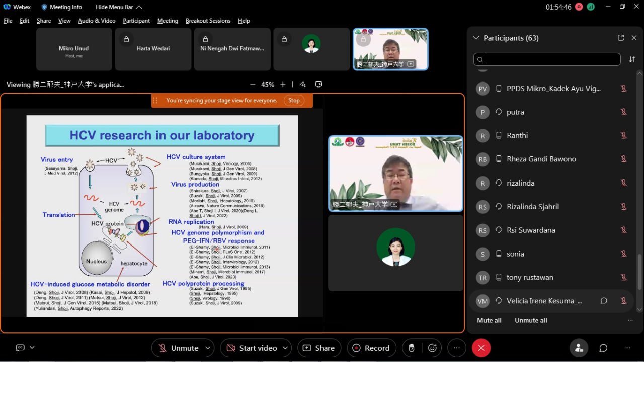 Dekan FK Unud, Dr.dr. Komang Januartha Putra Pinatih, M.Kes., menjelaskan, Guest lecture kali ini menghadirkan narasumber dari Kobe University Prof. Ikuo Shoji, M. D, Ph.D dengan topik Insight into Hepatitis B & C Pathogenesis dengan moderator dr. Putu Yuliandari, S.Ked., Ph.D.
