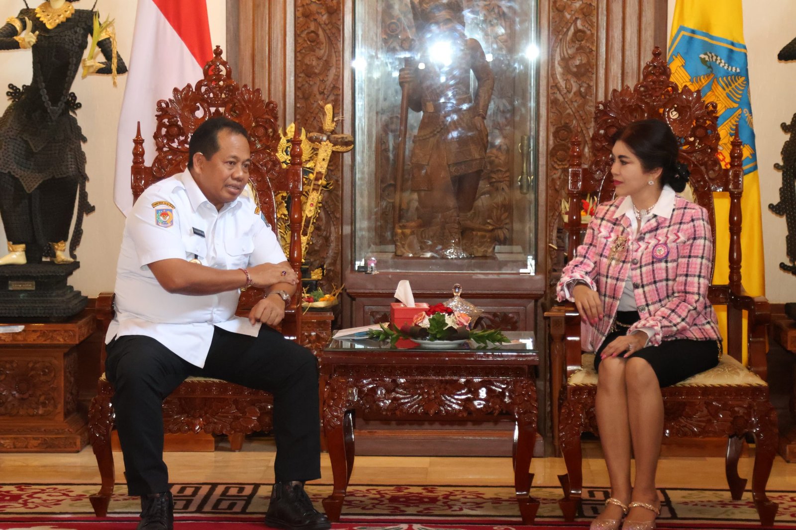 Foto: Pj. Gubernur Bali, S. M. Mahendra Jaya, saat menerima Presiden Dewan Dunia untuk Pengobatan Pencegahan (WOCPM), dr. Deby Susanti Vinski, di Jaya Sabha, Denpasar, pada Rabu (6/11) siang. (barometerbali/213)