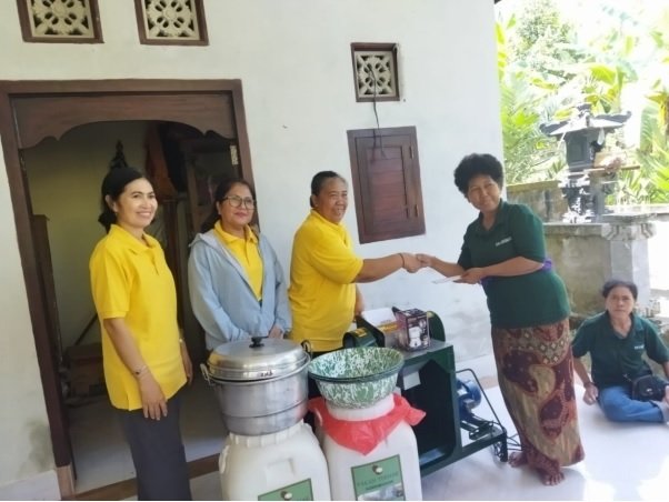 Anggota KWT Ketut Sadri mewakili anggota menyatakan senang mendapat pengetahuan mengenai teknik produksi minyak kelapa yang hemat waktu dan biaya serta menghasilkan minyak yang lebih banyak. Selain itu juga mendapat pengetahuan metode pembuatan pakan ayam kampung dengan metode fermentasi. “Semoga semua ilmu itu dapat diterapkan langsung di masyarakat.” ujar Sadri.