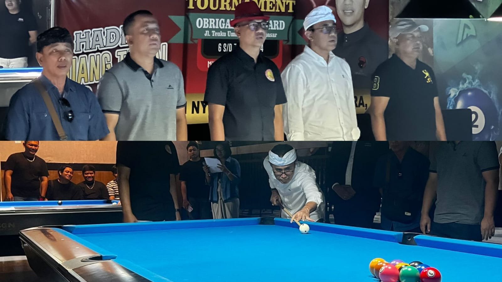 Ket foto : Wali Kota, Jaya Negara saat membuka secara resmi Turnamen Billiard Walikota Cup XIV Denpasar 9 Ball, di Obrigado Billiard, Kota Denpasar, pada Selasa (6/6). (Sumber: barometerbali/Tob)