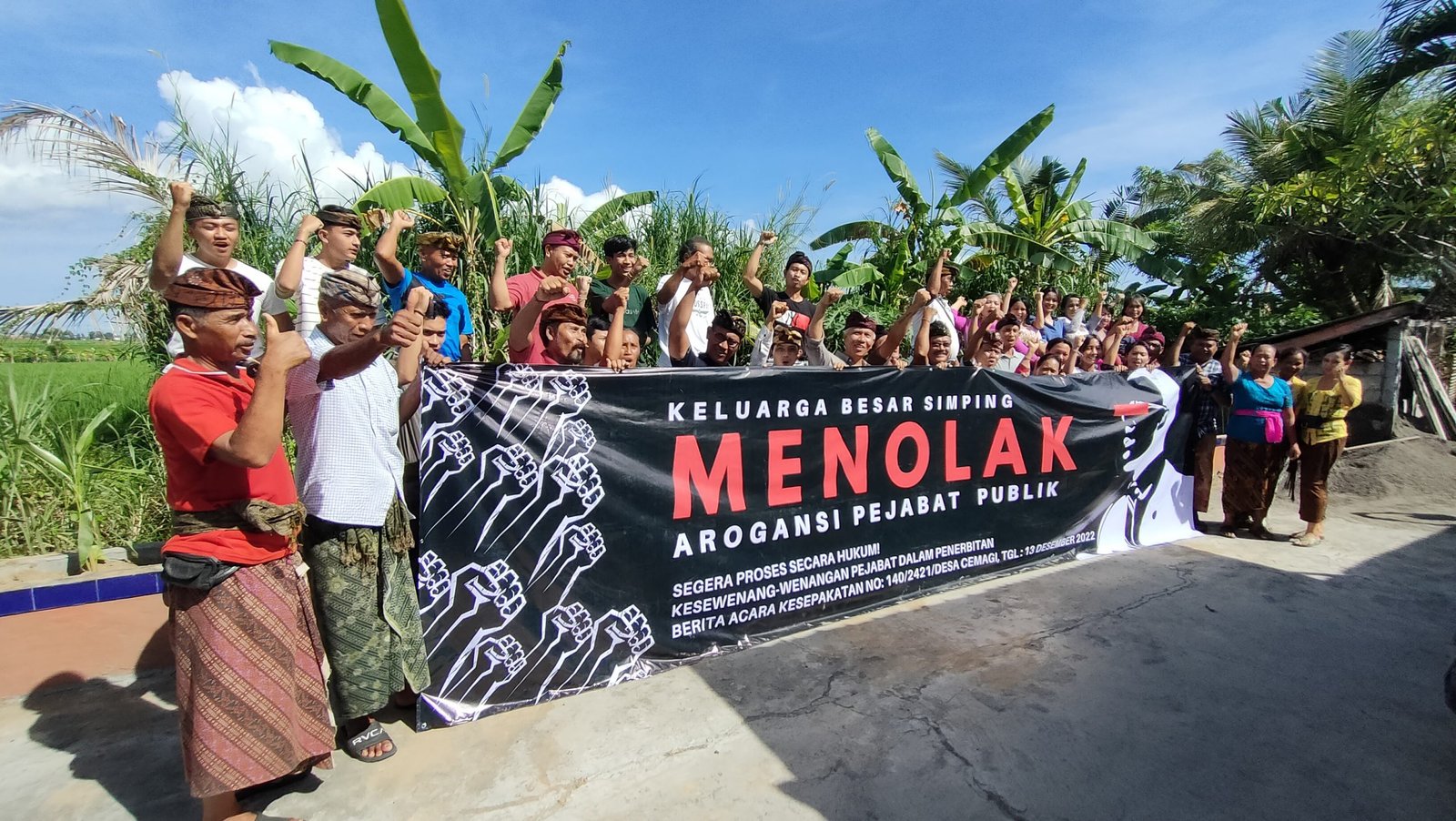 Foto: Aksi damai Keluarga Besar Simping menolak kesepakatan dikeluarkan oleh Perbekel Cemagi yang dianggap berpihak terkait permasalahan gang peninggalan leluhur yang diklaim pihak investor sebagai jalan umum di Br. Mengening, Desa Cemagi, Kecamatan Mengwi, Kabupaten Badung, Selasa (20/12/2022). (BB/db)
