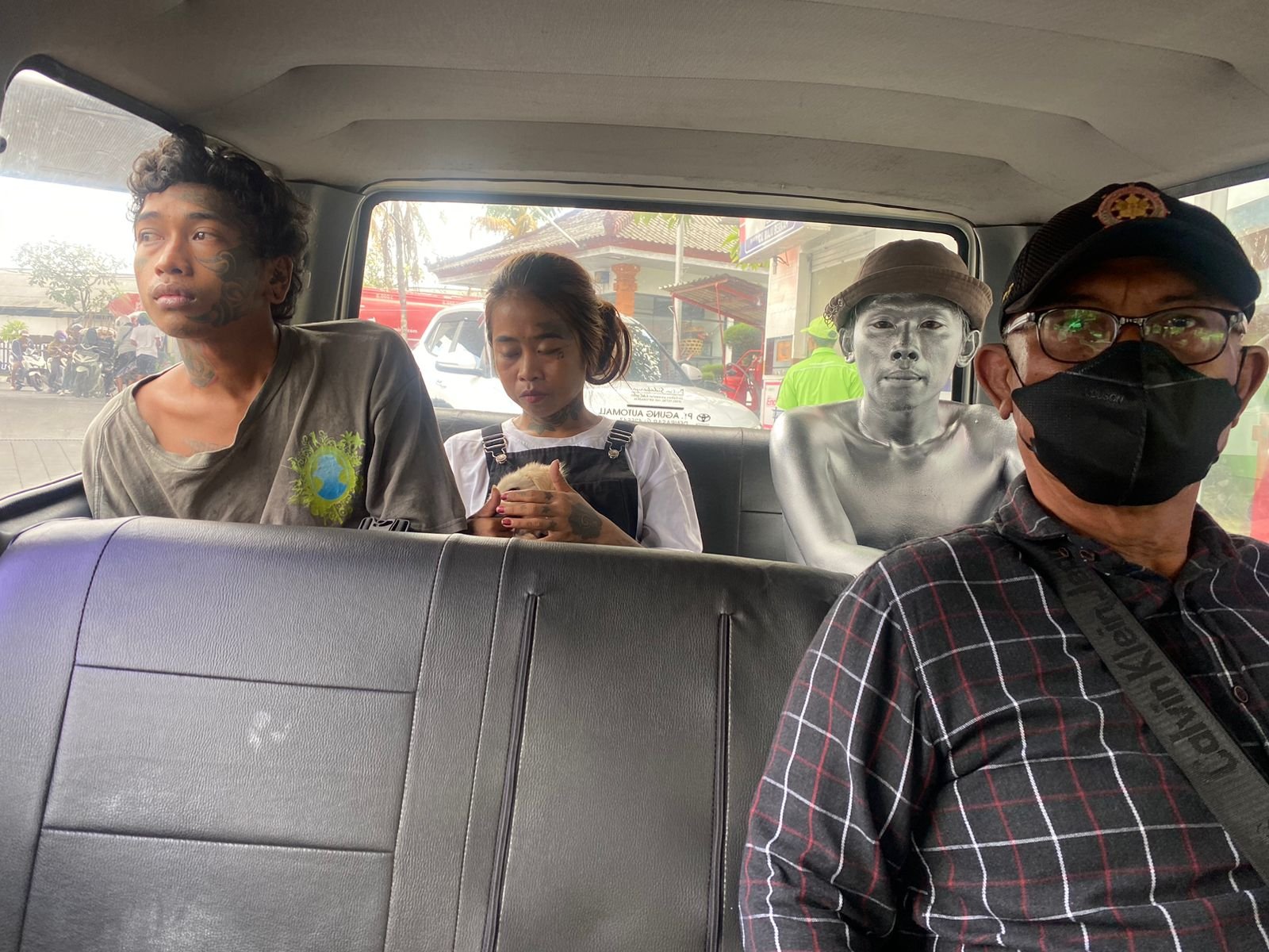 ”Kami berhasil mengamankan 4 orang yang terdiri dari 3 orang manusia silver, dan anak punk, serta 1 orang badut yang keseluruhan berasal dari luar Pulau Bali, dengan aktivitas mengamen di kawasan traffic light tersebut,” jelas Bawa Nendra.