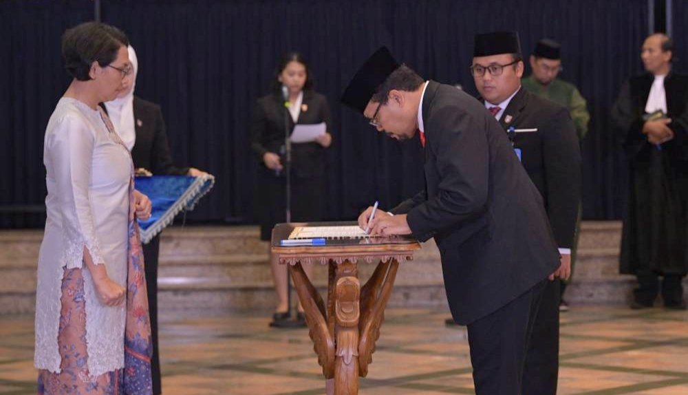Foto: Sekretaris Jenderal (Sesjen) Kemendikbudristek Ir. Suharti, MA.,Ph.D (kiri) mengangkat dan melantik Prof. Ir. Ngakan Putu Gede Suardana, MT.,Ph.D (kanan) sebagai Rektor Unud menggantikan Prof Nyoman Gde Antara di Plaza Insan Berprestasi, Gedung Ki Hajar Dewantara, Kemendikbudristek, Jakarta, Jumat (3/11/2023). (Sumber: Hms/Jubir Unud)