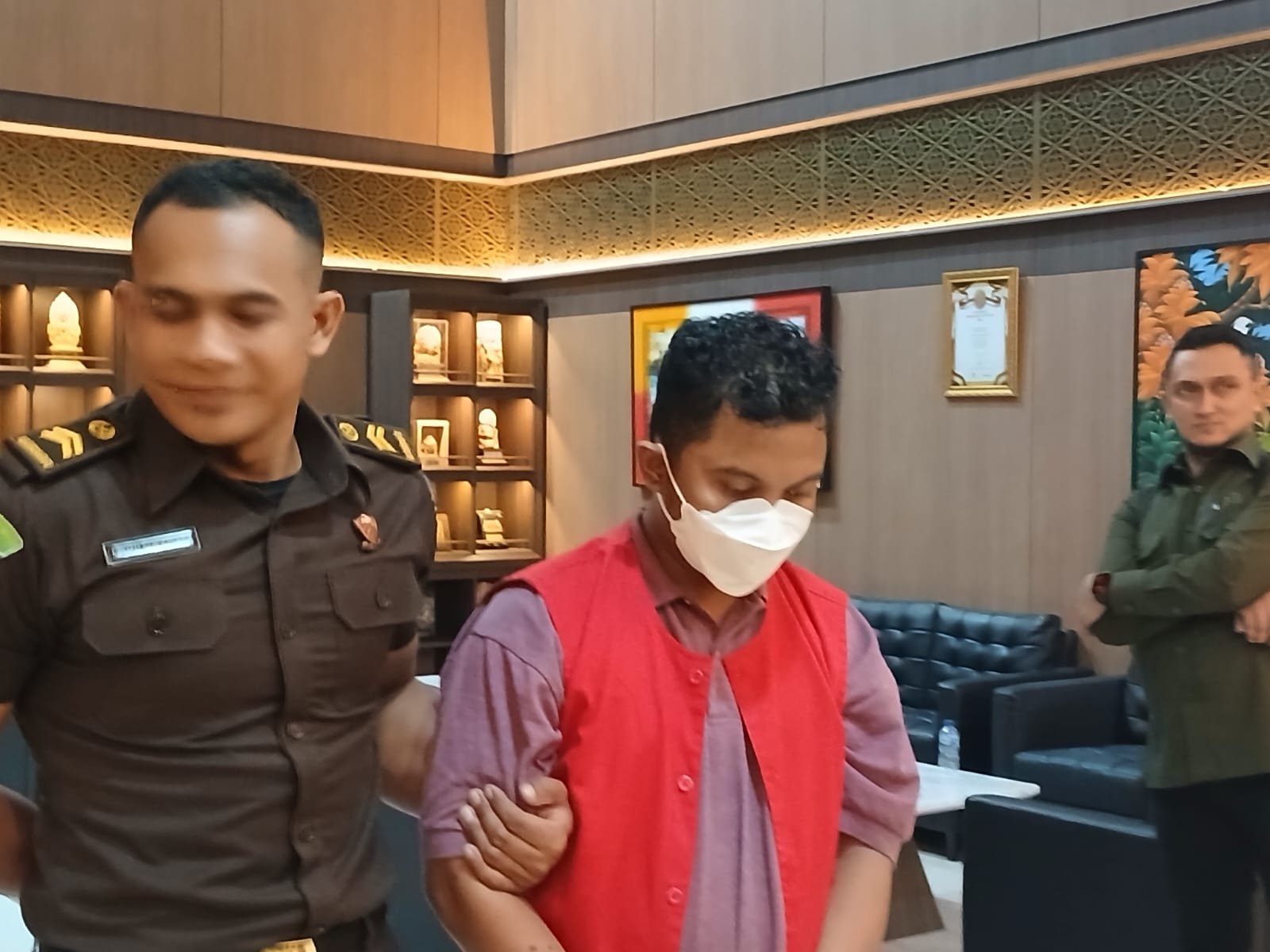 Foto: Buronan I Wayan Depa Yogiana saat tiba di Kejaksaan Tinggi Bali, pada Rabu (19/2/2025). (barometerbali/rian)