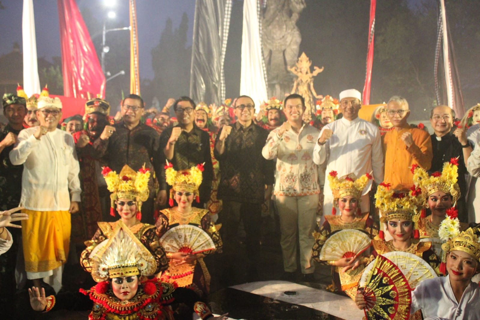 Denpasar | barometerbali – Suasana penuh toleransi dan semangat kebersamaan, Walikota Denpasar, I Gusti Ngurah Jaya Negara, bersama Wakil Walikota, I Kadek Agus Arya Wibawa, membuka gelaran Melepas Matahari 2024 di Catus Pata Catur Muka, Denpasar, pada Selasa (31/12). Acara ini menjadi perayaan akhir tahun di Kota Denpasar dalam kebersamaan lintas agama dan budaya.