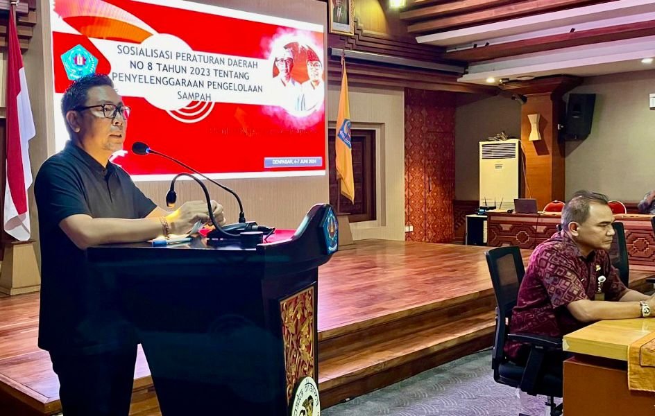 Denpasar| barometerbali – Wakil Walikota Denpasar, I Kadek Agus Arya Wibawa secara resmi menutup acara Sosialisasi Peraturan Daerah (Perda) Kota Denpasar No 8 Tahun 2023 tentang Penyelenggaraan Pengelolaan Sampah, yang digelar di Graha Sewakadharma, Jumat, (7/6). Kegiatan sosialisasi yang dihadiri oleh para kepala dusun/kepala lingkungan beserta jajaran se Kecamatan Denpasar Utara ini diharapkan mampu mendorong partisipasi masyarakat dalam pengolahan sampah berbasis sumber.