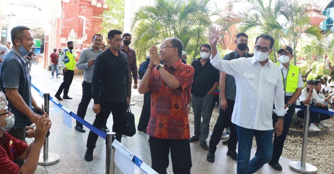 Ket foto: Gubernur Bali Wayan Koster dampingi Menhub Budi Karya Sumadi saat mengecek Terminal Kedatangan di Bandara Ngurah Rai, Sabtu, (4/6/2022)