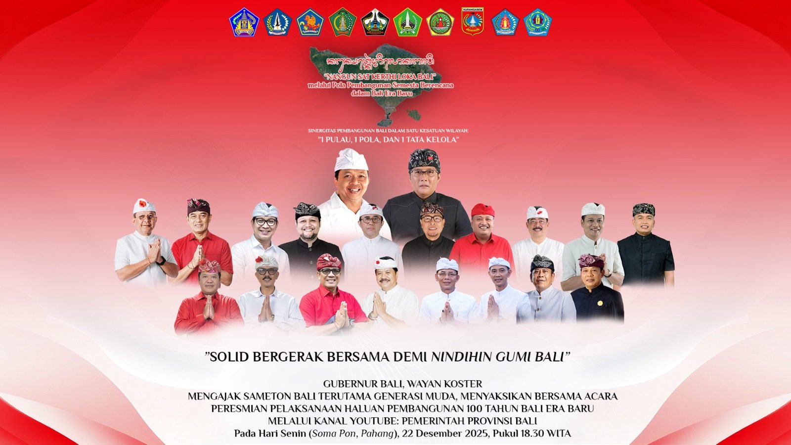 Barometer Bali | Denpasar — Gubernur Bali Wayan Koster mengajak seluruh sameton Bali, khususnya generasi muda, untuk menyaksikan acara Peresmian Pelaksanaan Haluan Pembangunan 100 Tahun Bali Era Baru yang akan disiarkan melalui kanal YouTube Pemerintah Provinsi Bali.