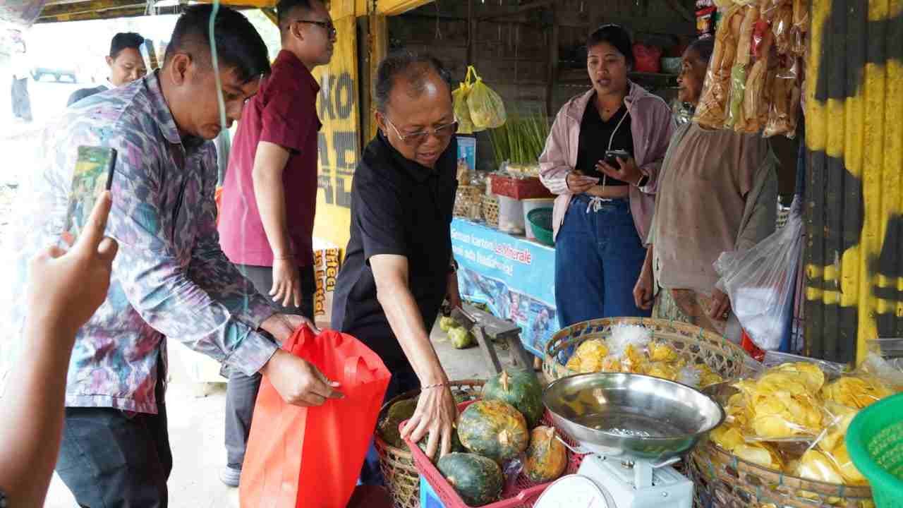 Di sela kunjungan meninjau proyek shortcut Singaraja–Mengwitani dan Turyapada Tower, Koster meluangkan waktu berhenti sejenak. Bukan di restoran besar, melainkan di sebuah warung sederhana milik Ni Nyoman Rina (85). Dengan ramah, ia memborong buah timbul (kluwih), nangka, dan sejumlah jajanan tradisional yang tertata di meja kayu sederhana.