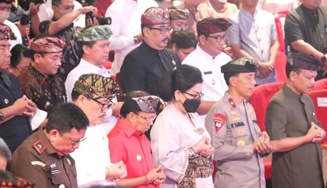 Turut hadir dalam acara tersebut, Ny. Putri Suastini Koster, Pimpinan DPRD Bali, Sekda Bali, jajaran Forkopimda Bali, Bupati/Wali Kota se-Bali beserta Ibu, Ketua DPRD kabupaten/kota se-Bali, Kepala Instansi Vertikal dan OPD di lingkungan Pemprov Bali, Bendesa Agung Majelis Adat Provinsi Bali dan undangan lainnya yang hadir secara langsung maupun secara virtual.