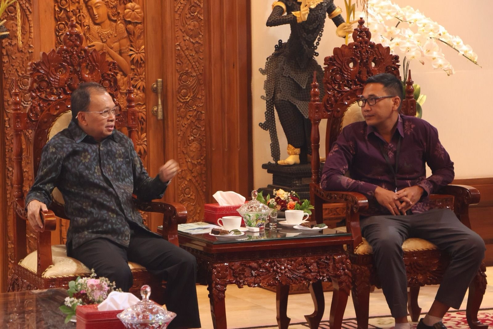 Sementara Gubernur Bali, Wayan Koster mengucapkan selamat bertugas kepada Kepala BPS Provinsi Bali yang baru dilantik. Dalam pertemuan itu, Gubernur Koster lebih lanjut mengatakan, Pemerintah Provinsi Bali yang dipimpinnya selalu menggunakan data nasional di BPS sebagai acuan di dalam merancang program pembangunan. Karena itu, Gubernur Bali berpesan agar BPS lebih detail dan spesifik menyajikan data yang berkaitan dengan Bali.