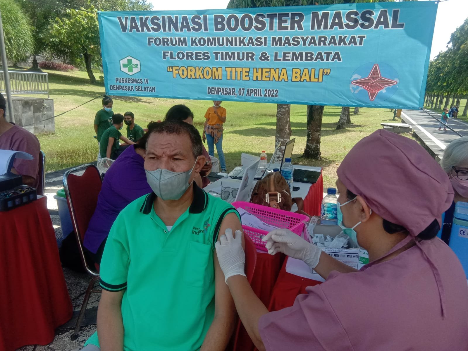 Rupanya kedatangan masyarakat yang antusias itu untuk mengikuti vaksinasi booster massal yang digelar Forum Komunikasi Masyarakat Flores Timur dan Lembata, Forkom Tite Hena bekerjasama dengan Puskesmas IV Denpasar Selatan.